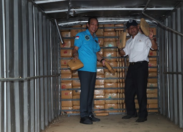 Ratusan kg ganja itu dikendalikan oleh dua pelaku berinisial RH (33) dan ER (38) yang disembunyikan lewat truk bok.